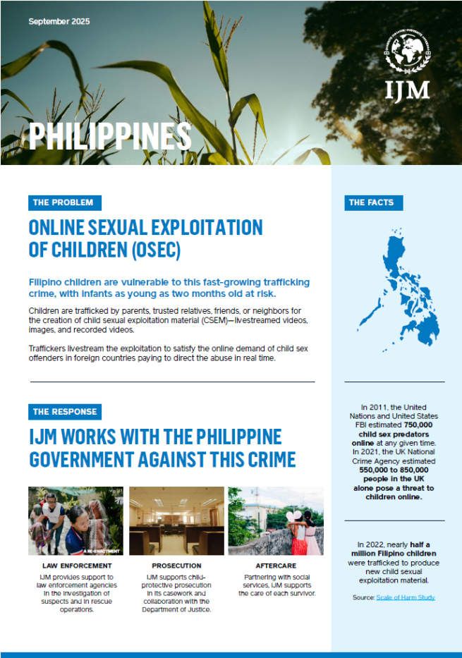 In 2021 International Justice Mission (IJM), together with the University of Nottingham Rights Lab, a world-leading human trafficking research institution, launched the Scale of Harm project to develop and implement a mixed-methodology providing prevalence estimates of trafficking of children to produce CSEM, including via livestreaming, in the Philippines.